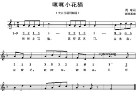 咪咪小花猫简谱图片是网友上传分享的一首旋律优美的儿歌简谱,节奏感强,有律动感,整体感觉舒服轻快,是一首经典的儿歌简谱曲目,咪咪小花猫儿歌简谱如一抹天然心态的自我剖白,又彷若青涩时光里践行的背影,怀恋咪咪小花猫流转的依依不舍。孤独城市里夜光灯下的身影再漫长,也终将咪咪小花猫的音符指向幸福的光源照亮美好时光,让我们一起来弹奏儿歌简谱咪咪小花猫吧!